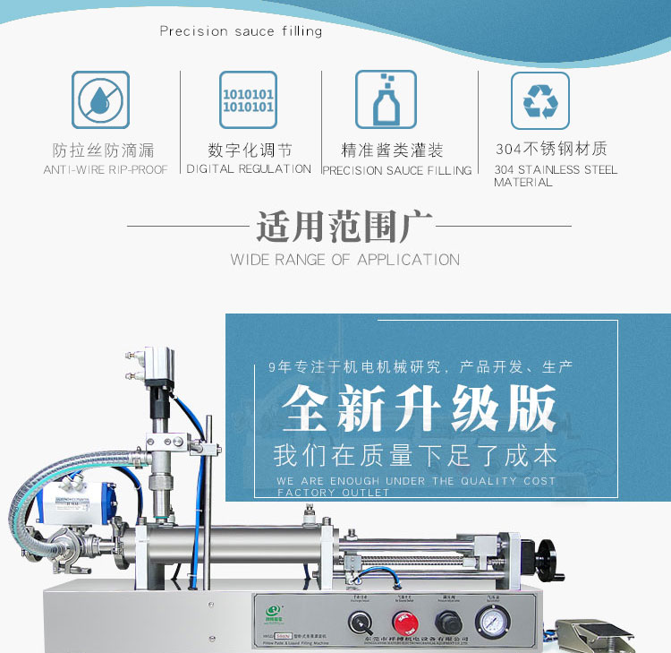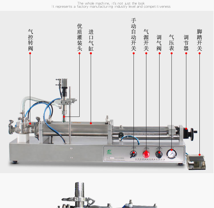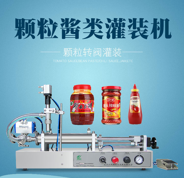 注:本機(jī)可選擇定做灌裝容量,可灌裝0.5-5L,適用于辣椒醬、豆瓣醬、沙拉醬等含顆粒狀的液體、半流體物料。該機(jī)主要?jiǎng)恿闅庠矗蛻粜枳詡淇諌簷C(jī)設(shè)備。