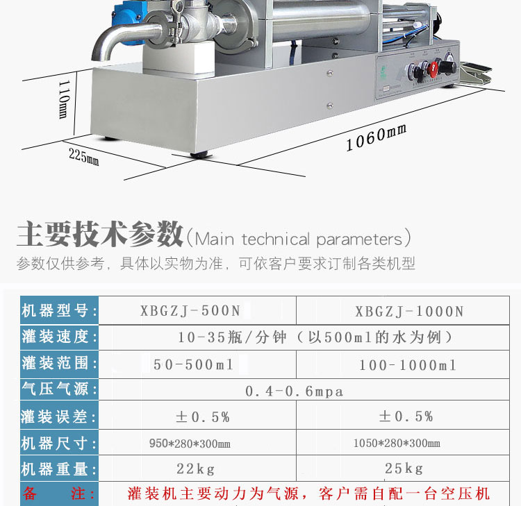 注:此參數(shù)僅供參考,具體以實(shí)物為準(zhǔn);可依據(jù)客戶要求定制各類半自動(dòng)灌裝機(jī);