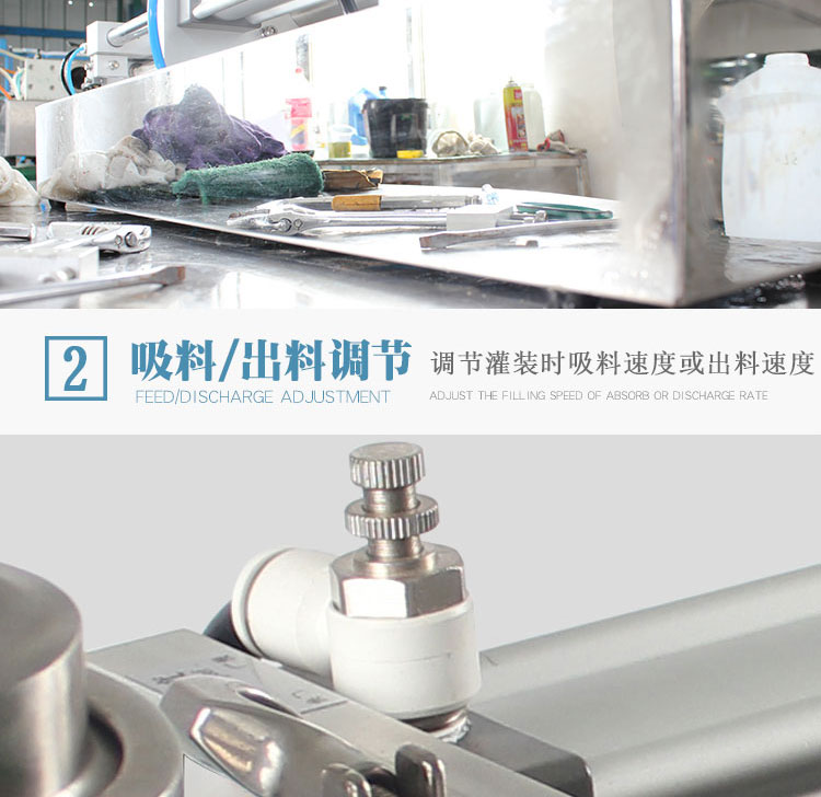 2、由于采用氣動(dòng)控制,并采用機(jī)械定位,所以灌裝精度高,精度可以控制在±0.5%;