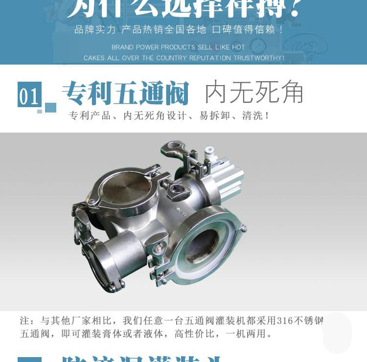 4、可以膏液兩用的五通閥,并且是SS316不銹鋼材質,五通閥內無死角,易清洗;