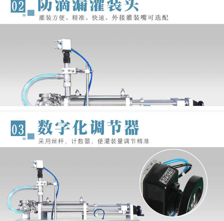 3、采用絲桿、計數器,使灌裝量調節精準,并可以數字形式直觀地體現;
