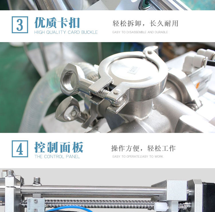 2、由于采用氣動控制,并采用機械定位,所以灌裝精度高,精度可以控制在±0.5%;