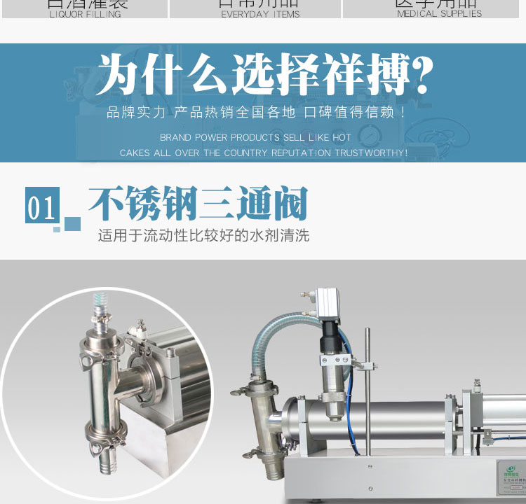 2、由于采用氣動控制,并采用機(jī)械定位,所以灌裝精度高,精度可以控制在±1%