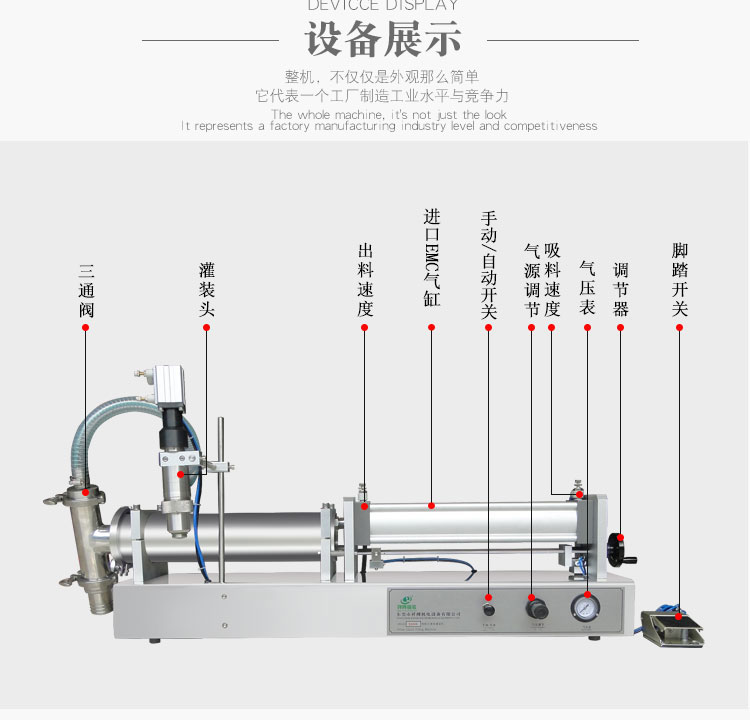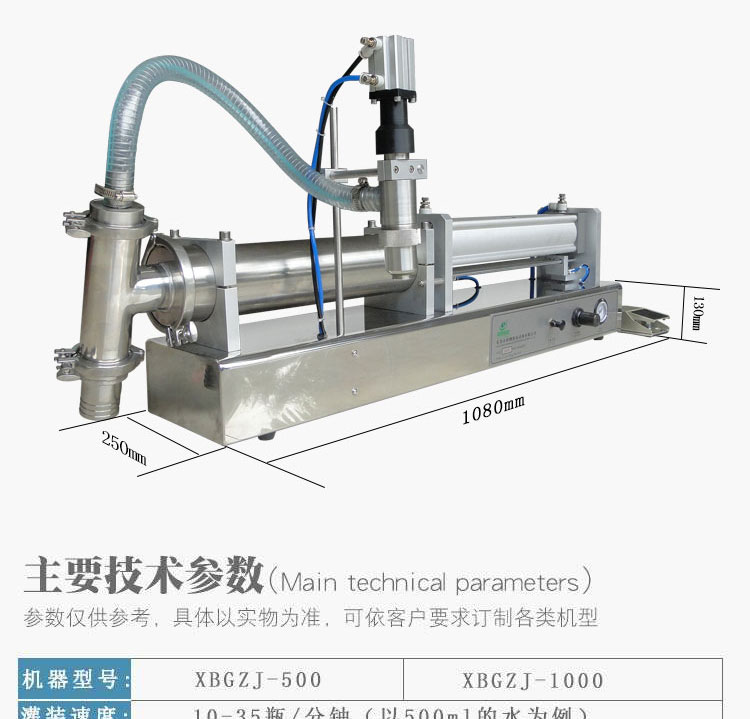 8、灌裝速度快,每分鐘可以來回灌裝30次,以500ml的水為例,灌裝精度是±1%