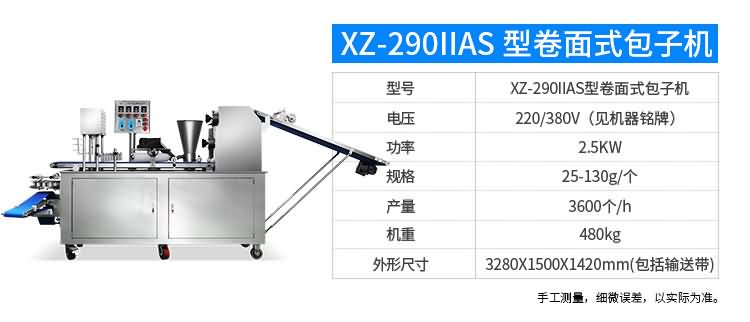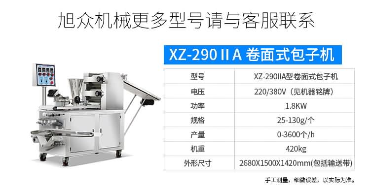 XZ-87型全自動包子機,可生產各種肉包、菜包、肉菜包、小籠包、湯包、水晶包、圓饅頭、奶黃包、豆沙包、叉燒包、南瓜餅、煎堆等十幾種包餡制品。適用于賓館、飯店、學校、機關企業食堂、饅頭或包子加工廠、早餐工程店及速凍食品廠等單位。可滿足不同客戶群體。免費提供工藝技術。免費上門培訓指導安裝。