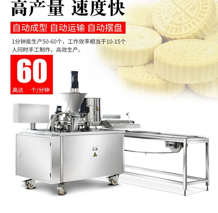 ◆杏仁餅機配有自動排盤裝置,成型后可以自動輸送并擺盤。適用于花生、芝麻等的干性物作為夾心材料,做出多種不同口味夾心的粉餅。也可以關閉夾心功能,做不夾心的杏仁餅、炒米餅、綠豆餅、桂花炒年糕等粉餅。
