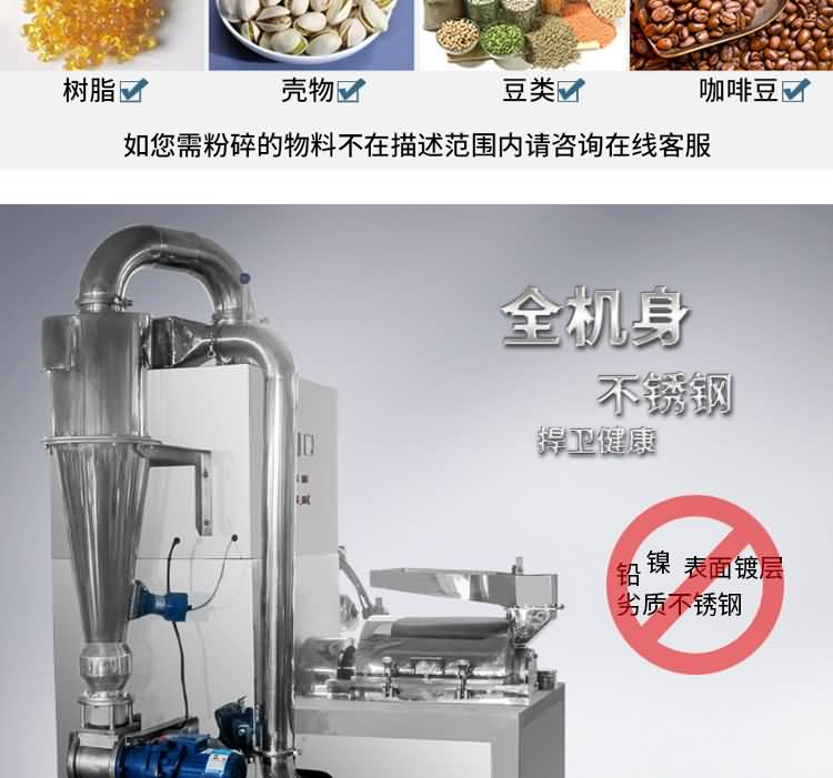 二代超微粉碎機組能處理如化學制品、食品、藥品、化妝品、染料、樹脂、殼物等多種物料的粉碎及分級,該機能對大米、白糖、各種豆類、沉香木、花椒、胡椒、咖啡豆、可可豆、茴香、八角、桂皮、孜然、豆蔻、百里香等各種物料起到良好的粉碎效果。