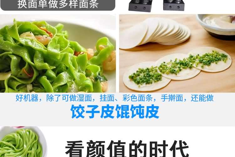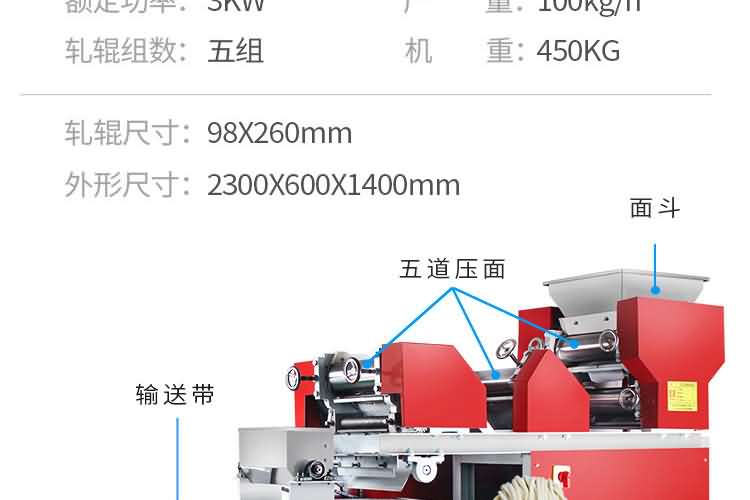 以上噴塑鐵外殼面條機不帶疊皮功能,電壓都是380V,常規機型,可根據客戶要求添加組數和寬度尺寸!