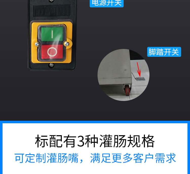 泵浦式灌腸機是加工制作香腸、火腿腸、親親腸、臺灣熱狗等漿狀的機械,以及做火鍋料的灌漿配套設(shè)備,本機外觀選用不銹鋼材料制造,外型美觀、體積小、噪音低、用電省,生產(chǎn)效率高,操作方便。