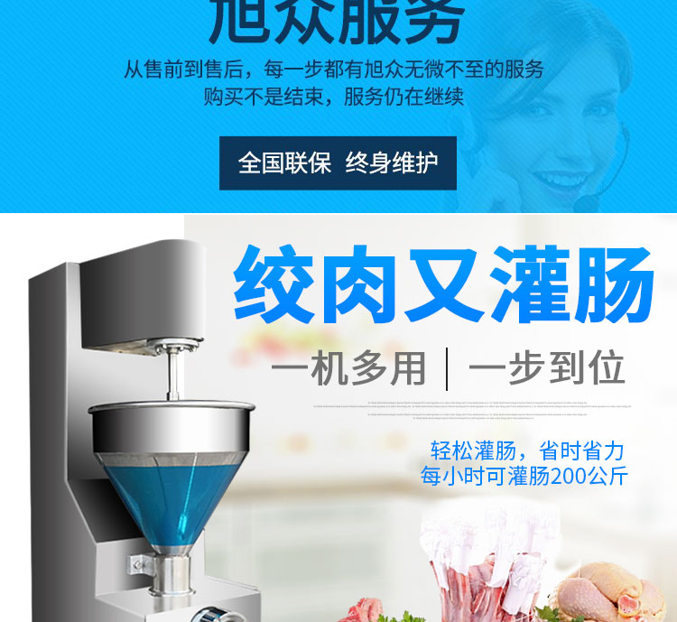 灌腸機是加工制作臘腸、香腸等含顆粒的專用機械,本機外觀選用不銹鋼材料制造,外型美觀、體積小、噪音低、用電省,生產效率高,操作方便。