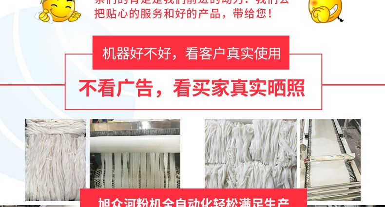 ◆高產(chǎn)高效:1公斤大米可產(chǎn)2.8~3公斤的河粉,粉條耐性佳、鮮嫩潔白、柔軟滑爽;