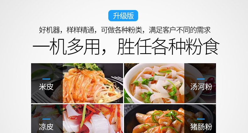 ◆一機多用:多功能河粉機器可生產(chǎn)制作河粉、腸粉、涼皮、面皮、米皮、粉皮、切粉、粿條等。