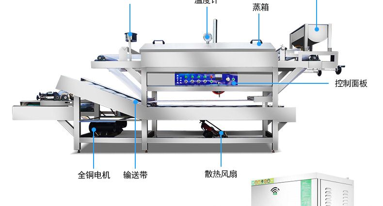 ◆節(jié)能低耗:通過新型節(jié)能路、節(jié)能風(fēng)管及隔熱層等,使水箱內(nèi)膽充分吸收熱量,因此,比普通河粉加工機器節(jié)能40%以上;