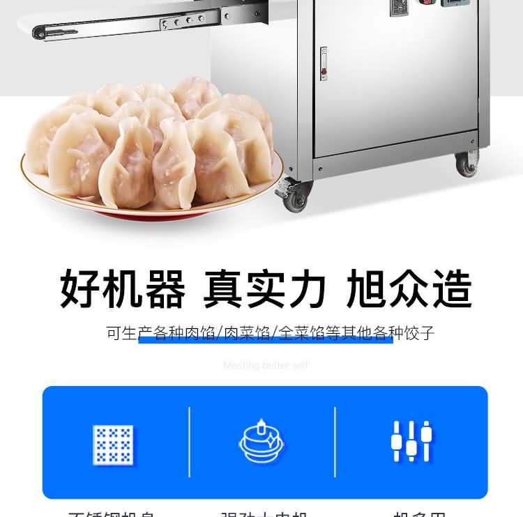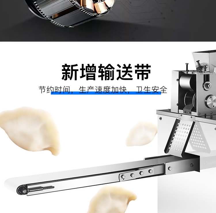 JGB-120-5A型輸送帶餃子機,更換機頭可做春卷、餛飩、火鍋水餃、珍珠水餃、咖喱餃子、花邊餃子、鍋貼餃子