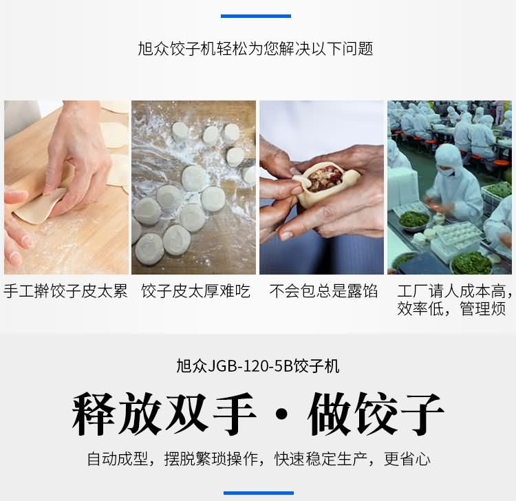 JGB系列餃子自動成型機,均適用于賓館、飯店、餐廳、團體食堂加工、幼兒園、速凍餃子生產。
