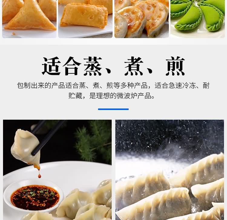 ◆包制出來的產品適合蒸、煮、煎等多種料理,適合急速冷凍、耐貯藏,是理想的微波爐產品;