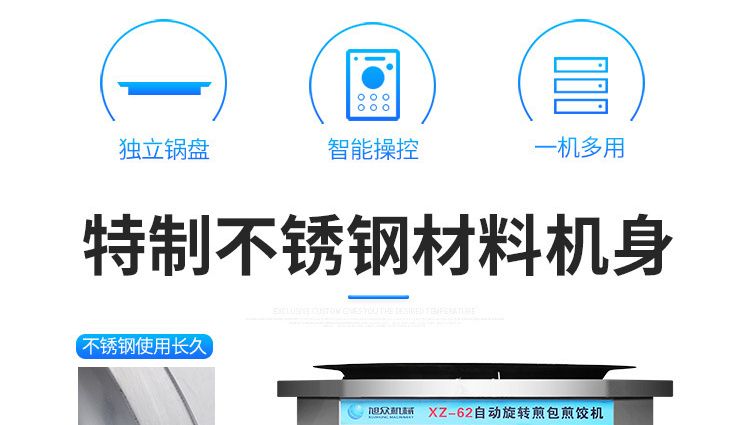 JGB-62自動(dòng)旋轉(zhuǎn)煎包煎餃機(jī)能夠有效的防止餃子/包子燒焦,使每個(gè)餃子/包子受熱均勻等功能;外殼均由不銹鋼制造,外觀精美耐用,機(jī)器使用燃?xì)狻?/span>