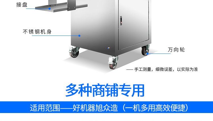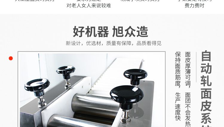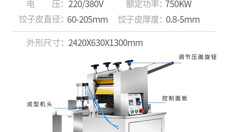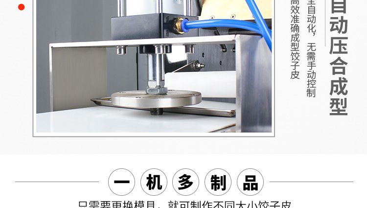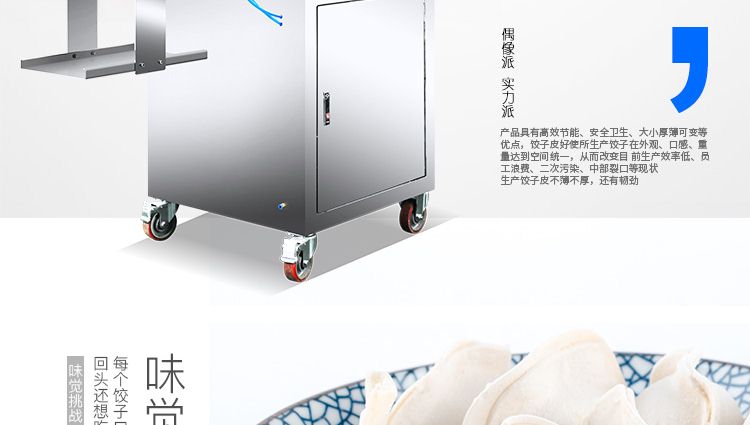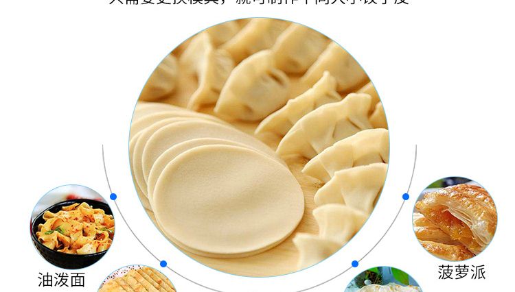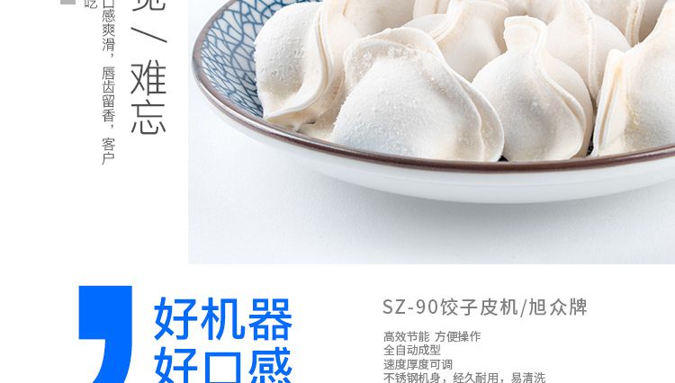 JGB-90型餃子皮機(jī)是我公司開發(fā)生產(chǎn)的先進(jìn)餃子皮生產(chǎn)設(shè)備??梢院唵胃鼡Q模具(可根據(jù)客戶定制不同形狀、尺寸的模具),本設(shè)備采用氣缸運(yùn)動。本廠生產(chǎn)的90餃子皮機(jī),采用多道壓面輥壓面,壓面效果優(yōu)異,壓出的面皮筋道,進(jìn)一步提高所包出的餃子口感。