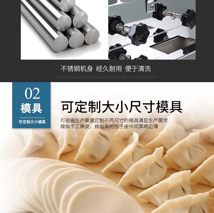 ◆本機具有高效節(jié)能、安全衛(wèi)生、無邊角廢料、大小厚薄可定制等優(yōu)點,使所生產餃子皮在外觀、唇,里量達到空間第一,從而轉變當今生產效率低、員工揮霍、二次污染、中部缺口等現(xiàn)狀,該仿手工餃子皮機除具有以上優(yōu)點外,還可依據(jù)生產必要轉變出皮速度等優(yōu)點。