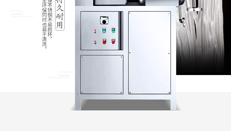 改進(jìn)型米粉、米線專(zhuān)用機(jī),裝有自動(dòng)溫空裝置,整個(gè)生產(chǎn)過(guò)程設(shè)備均在恒溫狀態(tài)下運(yùn)行,自動(dòng)化程度高,操作簡(jiǎn)單,l人即可生產(chǎn)??缮a(chǎn)米粉、米線、桂林米粉、過(guò)橋米線、年糕等產(chǎn)品。各種形狀都可生產(chǎn)(圓、扁),加工食品外表光滑,厚薄、寬窄、粗細(xì)均勻可調(diào),筋軟適度,有彈性,口感柔軟、味道純正。