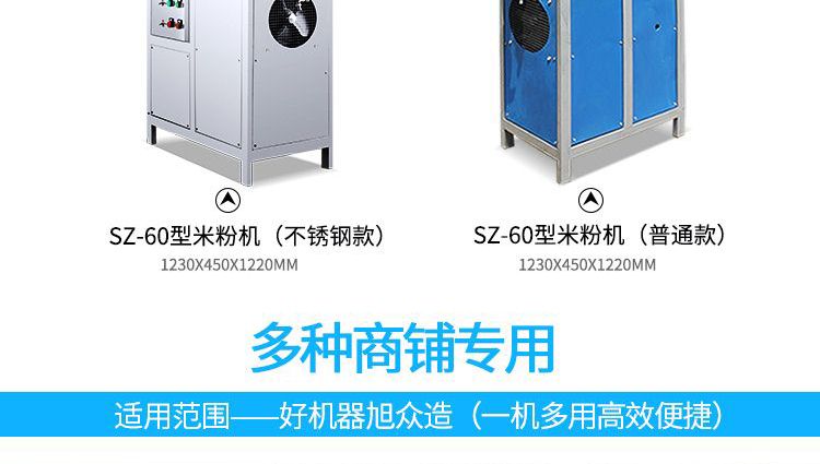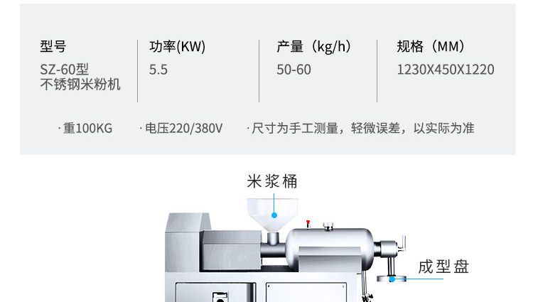 SZ-60不銹鋼米粉機(jī),可生產(chǎn)米粉、米線、桂林米粉、過(guò)橋米線、年糕、糍粑等產(chǎn)品。各種形狀都可生產(chǎn)(圓、扁),加工食品外表光滑,厚薄、寬窄、粗細(xì)均勻可調(diào),筋軟適度,有彈性,口感柔軟、味道純正。