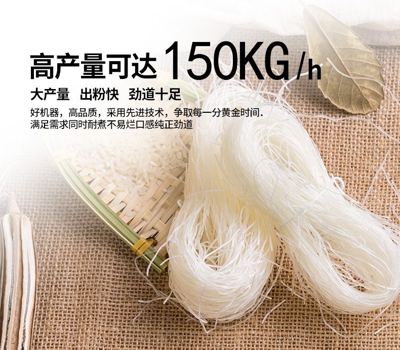 ◆ 米粉機生產多樣性可生產米粉、米線、粉絲、粉條、年糕、玉米面條、各種雜糧粉絲、各種面條、雜糧面條、彩色面條以及以紅薯、玉米、大豆、蠶豆等制成淀粉為原料的等多種食品而且每種食品厚薄、粗細等規格可根據需要任意調整。
