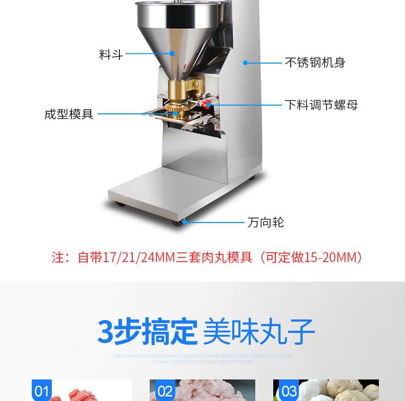 XZ-605肉丸成型機為肉制品成丸設(shè)備,能生產(chǎn)出大小尺寸七個規(guī)格的肉丸及花生貢丸,并可按要求尺寸訂做8-30mm的規(guī)格,具有速度快、衛(wèi)生方便、易拆洗等特點,可代替八個人手工生產(chǎn),可為廠家節(jié)省人員的投入、提高生產(chǎn)速度。