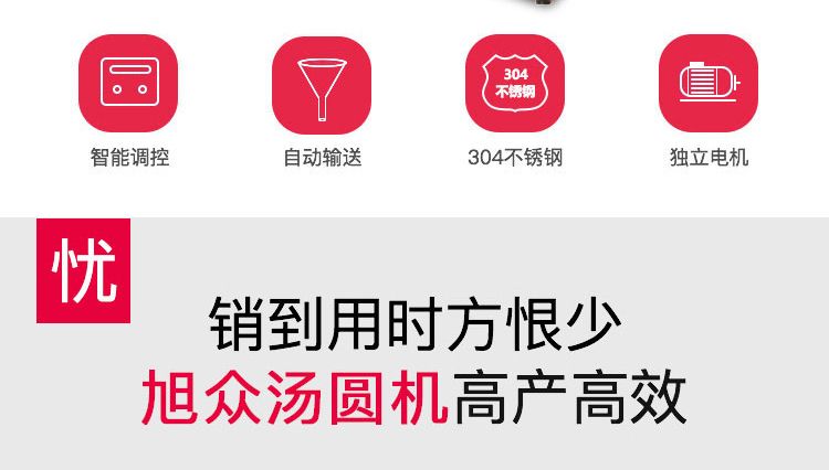 VFD-4000A型全自動湯圓成型機,功能齊全,適用性廣,自動化程度高,定量準確,操作簡單,只要將面團與餡料放入進料口,開機便可自動搓圓、成型,制品不易變形。
