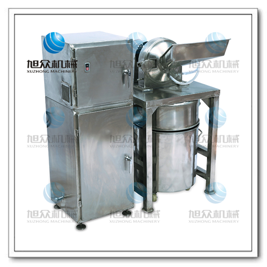 水冷多功能粉碎機(活動錘式粉碎機)利用活動小錘子高轉速旋轉和利用離心力甩打的形式,使被粉碎物經錘頭和邊沿齒輪相互沖擊、摩擦等綜合作用獲得粉碎。本機結構簡單、堅固、運轉平穩、粉碎效果良好,被粉碎物可直接由主機磨腔中排出、粒度大小通過更換不同孔徑的網篩獲得,另外該機為全不銹鋼。機殼內壁全部經機加工達到表面平滑,改變了以前機型內壁粗糙、積粉的現象,使藥品、食品、化工等生產更符合標準,達到GMP的要求。