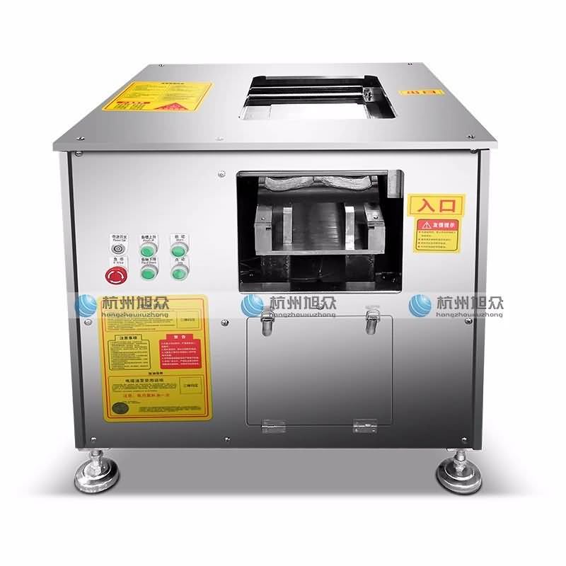 大型切魚片機(jī)(自動進(jìn)料)采用多組刀片同時斜切的原理,完善了單刀切片效率慢和切片不均勻的難題,真正意義上實(shí)現(xiàn)了多片斜切。魚片機(jī)專業(yè)用于鮮品、雞胸、鴨胸、里脊肉片、牛肉、羊肉、各種魚柳,把需要處理的樣品放在刀梳上,機(jī)器可一次性自動切割成片。每小時100Kg-150kg,日產(chǎn)量可達(dá)1噸以上。但是!!!此款設(shè)備最薄只能定做3mm,如要定做1.8-3mm以內(nèi)范圍的規(guī)格另擇其它魚片設(shè)備!