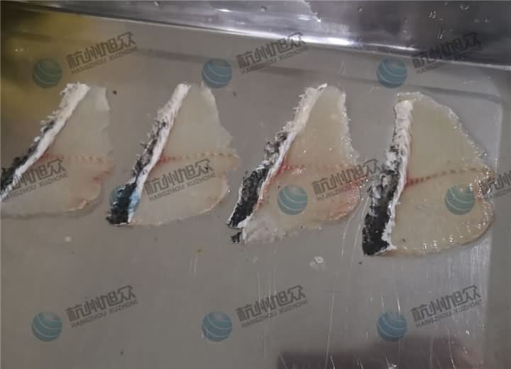 前些天有客戶問能不能把全自動切魚片機分別切的2mm和2.5mm規格的魚片拍個圖片給他看看,這樣他就能知道自己要定的是多厚規格,于是小編給他安排上了,如圖所示: