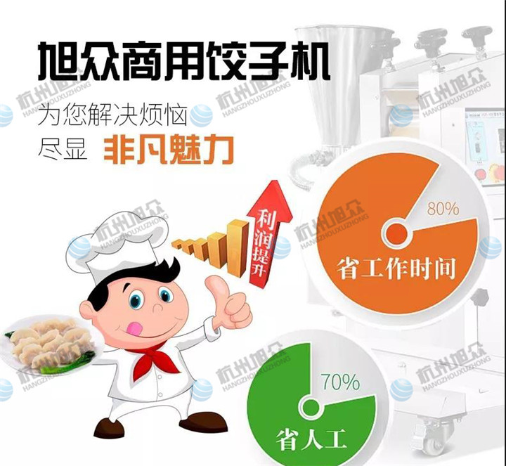 旭眾全自動(dòng)商用餃子機(jī)打破傳統(tǒng)手工包餃子的模式,由機(jī)器替代人工,大大提高了工作效率和產(chǎn)品質(zhì)量高效率生產(chǎn)。小資本投入,高效收益。一臺(tái)餃子機(jī)讓你省工作時(shí)間,省人工費(fèi)。這其中的利潤(rùn)空間是可觀的。