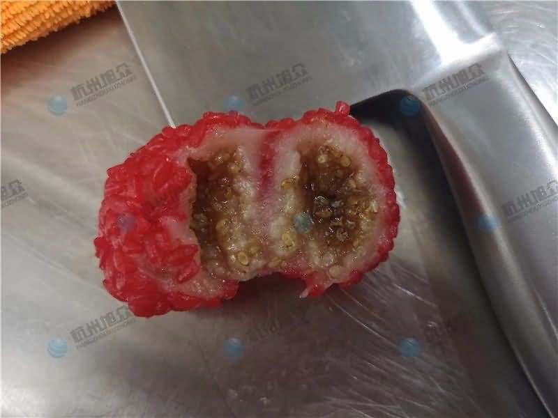 因為餡料、面皮都可是客戶自己準備帶來現(xiàn)場的,所以直奔主題,需要搓圓做成團子形狀,之后再人工裹紅米,因為不帶擺盤的VFD-4000A湯圓機當時沒有樣機,所以安排VFD-4000湯圓機(帶擺盤)做團子。