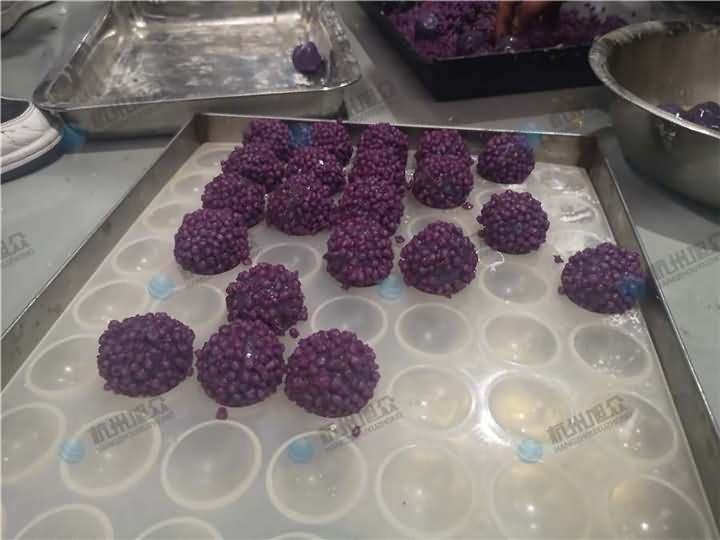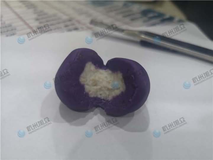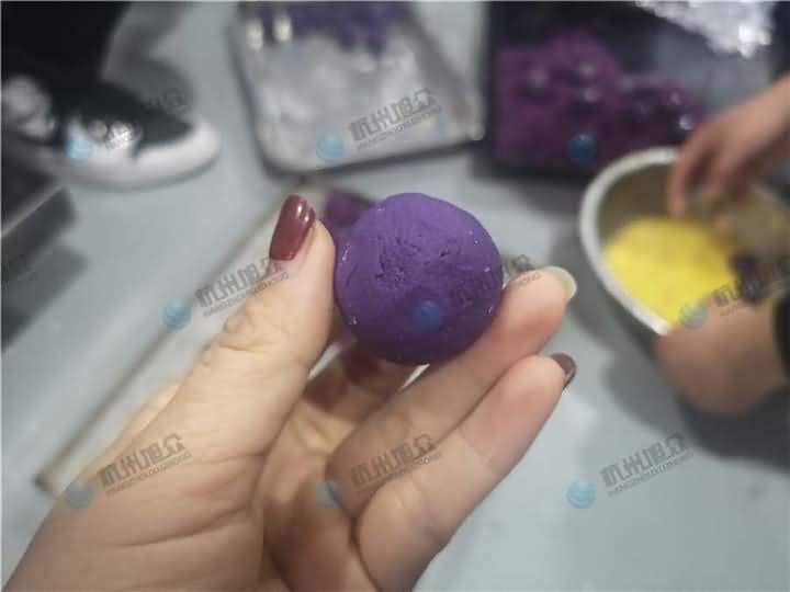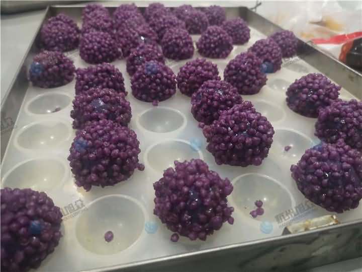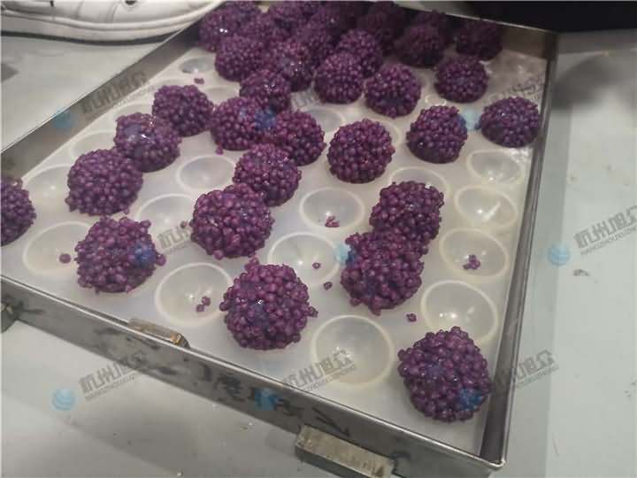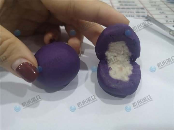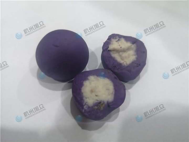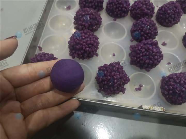 老客戶再次咨詢做紫薯球設備,之前有購買的糍粑機不適合生產紫薯球,所以知道想看看湯圓機做出來的紫薯球效果,物料自行準備:紫薯面團、香芋餡料、雞蛋、各種雜糧米。
