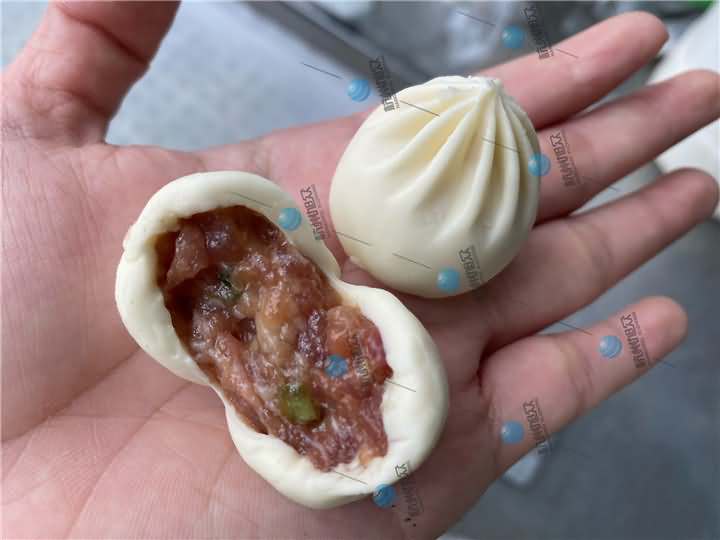 兩組包子成品都是由XZ-87全自動包子機生產(chǎn)的14克和18克左右的小籠包,圖一包子皮薄,圖二看起來明顯比圖一的面皮要厚一點,各個生產(chǎn)的包子面皮比例均勻,不切開在沒有蒸之前是看不出有什么區(qū)別,等兩組都做好后,圖二因為是發(fā)面小籠包,所以需要拿去醒發(fā)后再蒸熟,而圖一死面小籠包直接拿去蒸七八分鐘就差不多就好了。想了解包子機撥打4008852117預(yù)約上門考察!
