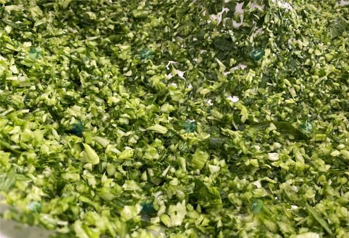 做包子餡、餃子餡優選SZ-300菜餡機,這可不是我們廠家說的,而是每一個過來考察包子機的客戶看到其中菜餡機的演示都會說,這臺菜餡機非常適合做包子餡、餃子餡,所以每每購買包子機全套設備的客戶,其中都會把SZ-300菜餡機也定購下來。那么我們來看看菜餡機切青菜效果: