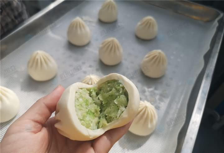 有人擔心包子機做出來的包子沒有餡料?別廠家的包子機我不清楚,但是旭眾包子機包出來的包子各個飽滿,當然這個也得根據客戶皮餡比例的要求來生產,包子機從15-120克包子只需跟換模具便可制作,不相信?可電話4008852217預約現場直觀包子機做包子效果哦!