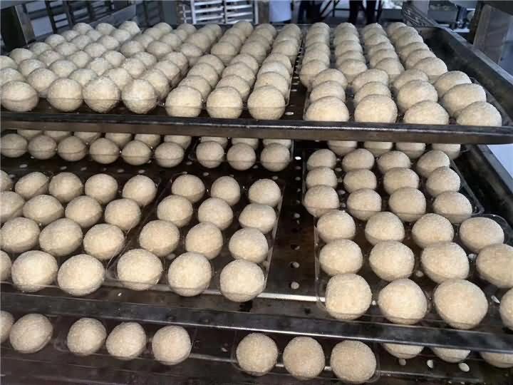 剛剛炸出來的麻圓成色非常好!麻圓沒炸之前都是用全自動湯圓機自動包餡成型,至于后期炸出來的麻圓效果,那就是屬于個人技術問題,如果沒有技術的話可以考慮購買湯圓機,我們將面粉提供做麻圓的工藝配方教學哦!
