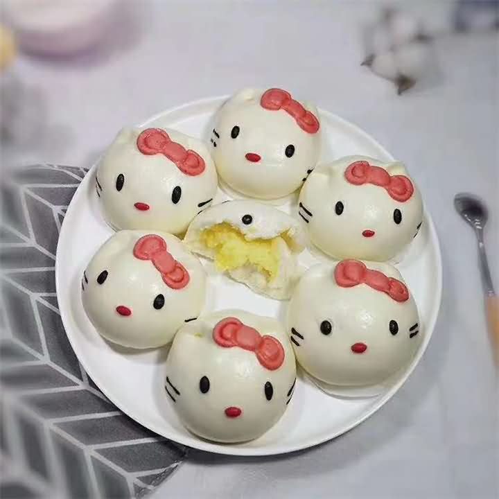 知道人的腦洞究竟有多大嗎?這個沒法用科學來說明,只能說是無限的。當我看到這個包子機客戶做的包子時,我也非常認同這話了。平常包子機做出來的包子不是帶花紋褶數就是淺花紋光邊包子,但是這個客戶卻帶來了不一樣的包子,非常的卡通,我問她你這包子是用包子機做出來的嗎?客戶說包餡成型那塊是用包子機做的,后面的加工是由我們人工來做的,現在包子鋪太多了沒點新花樣是不行的,然后卡通包也是限量售賣,所以也耽誤不了員工多少時間。