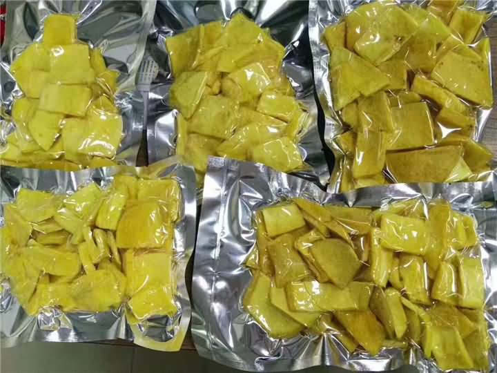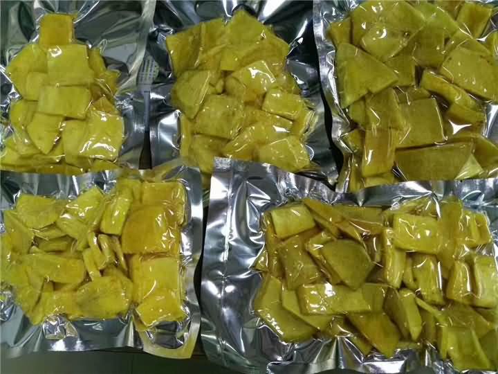 低溫真空油炸機油炸:保存了果蔬原有的形、色、香、味,并富含維生素、礦物質、纖維等多種營養成分,具有低糖、低鹽、低脂、低熱等特征,炸出健康時尚食品!剛炸好的芒果干效果: