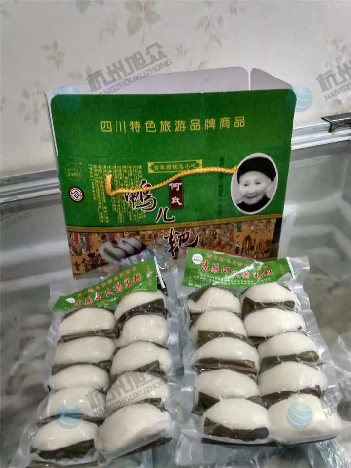 四川特色鴨兒粑又名豬兒粑,是一道宜賓名點,該品色澤潔白晶亮,皮薄鮮嫩,咬一口濃香撲鼻,油而不膩,芳香爽口,具有不粘葉、不粘筷、不粘牙等“三不粘”的特點。主要原料有豬肉、糯米、鴨兒粑葉(良姜葉)、芽菜、各種洗沙等。味道很好,油而不膩,芳香爽口。以其鮮嫩如雛鴨而得名。隨著鴨兒粑深受人們的喜愛,生產效率遠遠跟不上銷售量,于是老板便考慮用湯圓機高效生產鴨兒粑,而他的這一行動證明了湯圓機真的幫大忙了!現在每天鴨兒粑的產量遠遠高出當時請人工包鴨兒粑的效率,成品外形美觀,大小一致,湯圓機實乃不錯的得力助手!
