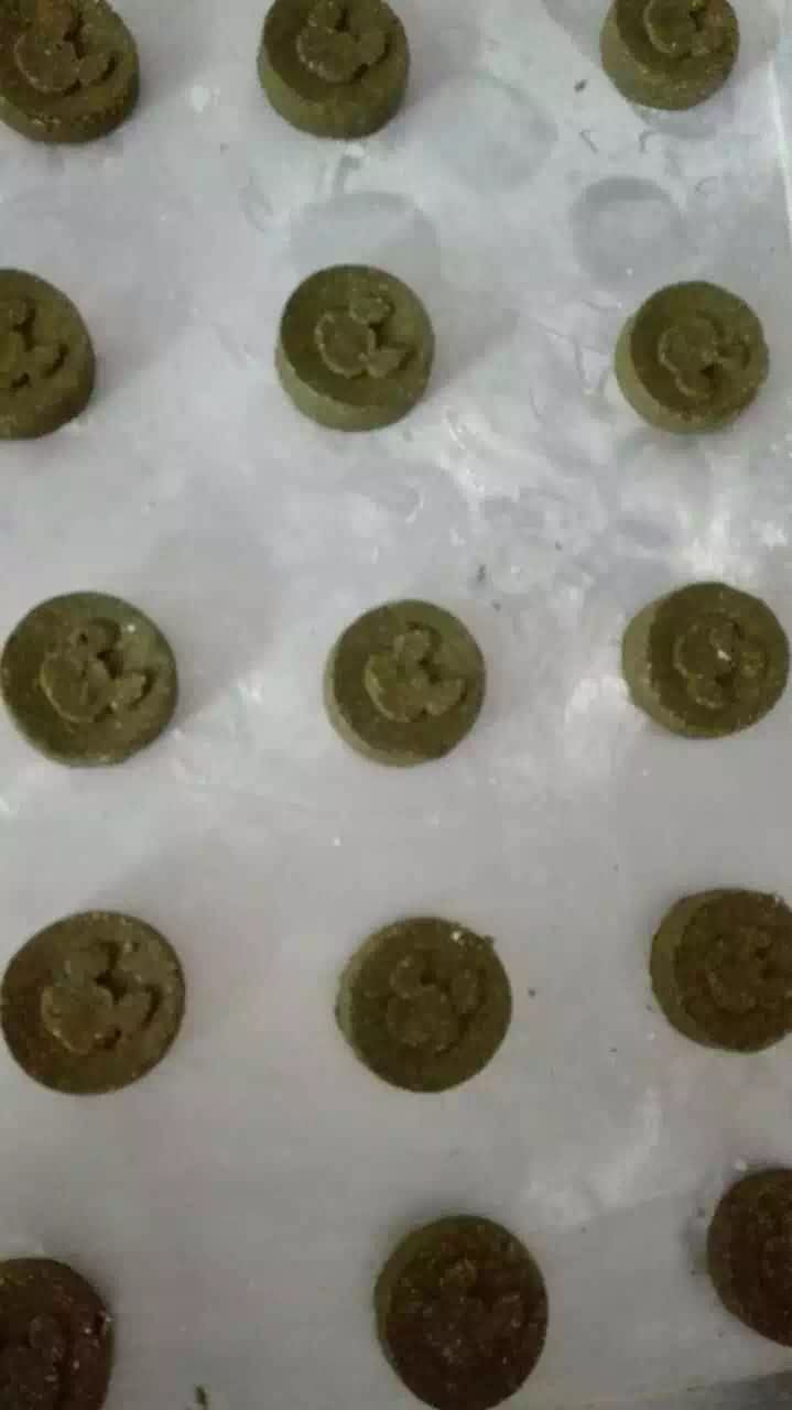 今天第一次知道寵物飼料居然也能用月餅機(jī)生產(chǎn)線制作!!!隨著經(jīng)濟(jì)發(fā)展越來越好,很多人都開始養(yǎng)起了寵物,貓、狗、鼠等等,鏟屎官們?yōu)榱俗屪约业拿⒆幽艹缘母眯蜁I幾百三四斤的貓糧、零食等等,消費(fèi)真是越來越高,有一家專門做寵物飼料的食品廠咨詢到月餅機(jī),現(xiàn)在寵物飼料的競爭太大,他想通過月餅機(jī)做出各種不同花樣的糧食,來吸引鏟屎官的視線從而引導(dǎo)銷售。因客戶物料問題無法提供現(xiàn)場試機(jī),不過感謝吳老板對旭眾品牌的認(rèn)可,直接定購月餅機(jī),現(xiàn)師傅上門調(diào)試設(shè)備、技術(shù)指導(dǎo)培訓(xùn)后,吳總的工作人員已能正常操作月餅機(jī)生產(chǎn)飼料食品,月餅機(jī)做的寵物飼料效果: