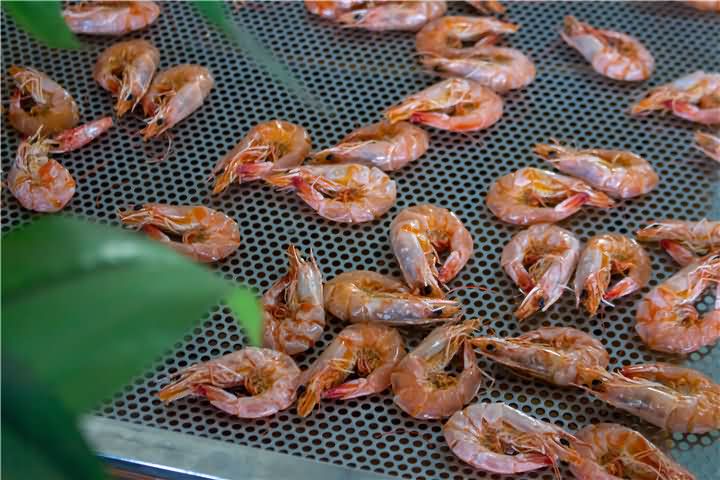 海鮮烘干該選擇什么樣的烘干方式呢?平常的不帶味的食品都是用高溫烘干效果,海鮮如果你還使用高溫烘干就會導致發臭的問題,那么該如何烘干呢?自然低溫高效烘干房是不錯的選擇!針對海鮮、煙熏肉等食品烘干。那么我們來看看烘干房低溫烘干蝦的前后對比效果: