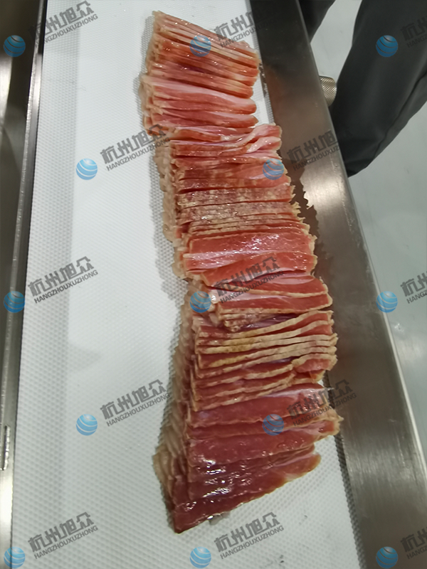 旭眾熟肉切片機能將叉燒肉、火腿腸、香腸、午餐肉、臘肉、五花肉、牛肉、鹵肉、熟肉類等肉類,切成片形狀。旭眾熟肉切片機最厚可把肉成20mm。旭眾熟肉切片機,采用國際先進技而設計,整機機架均為SUS304不銹鋼材質,經久耐用。輸送帶采用變頻獨立控制,切割尺寸調整方便;可拆卸食品級傳輸皮帶,方便清洗維護;出料口出有微動開關,操作安全并自帶輸送帶,切好的物料擺放整齊,無需排列可直接裝盤;特制法國進口刀片,鋒利持久;電器均采用知名品牌,德力西繼電器,臺灣臺達變頻器,浙江天正變壓器等,防爆開關等,腳輪設計,移動方便靈活機器穩定高效,操作方便,安全有保障。