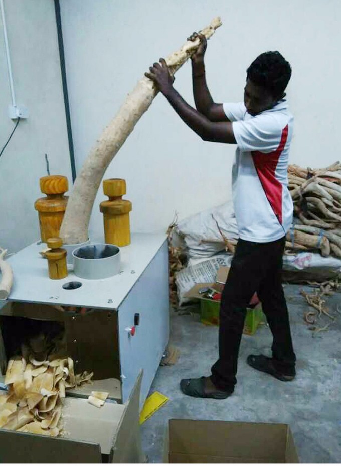入    料:將木質(zhì)壓模取出,調(diào)整好切片厚度,開啟機(jī)械后,將物料放入進(jìn)料口中即可