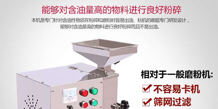 XL-910油脂粉碎機是專門針對杏仁、核桃、花生、芝麻、豆類、香料、食品調味料等含油性物質在粉碎和磨粉時容易出油、粘機的難題專門研發設計,能夠對含油量高的物料進行良好粉碎而且不出油、不粘機。
