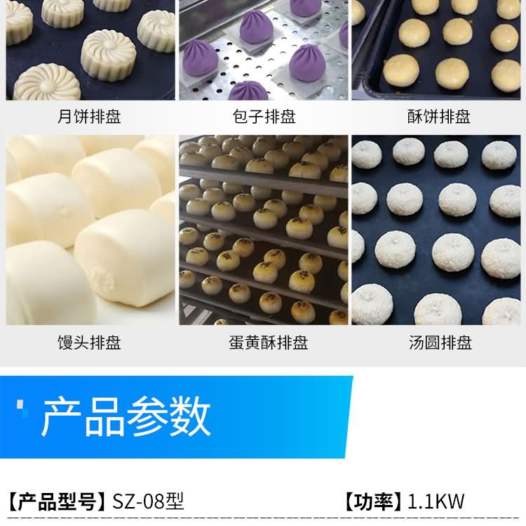 SZ-08型月餅自動排盤機(jī),可同于制作各種月餅。適用于蛋糕房、休閑食品廠、食品加工產(chǎn)、面包房、月餅加工廠、超市、學(xué)校、食堂等各種工作場所。可滿足不同客戶群體。免費提供工藝技術(shù)。