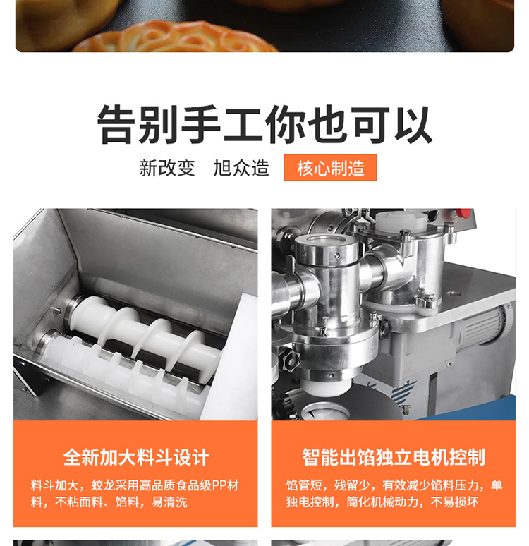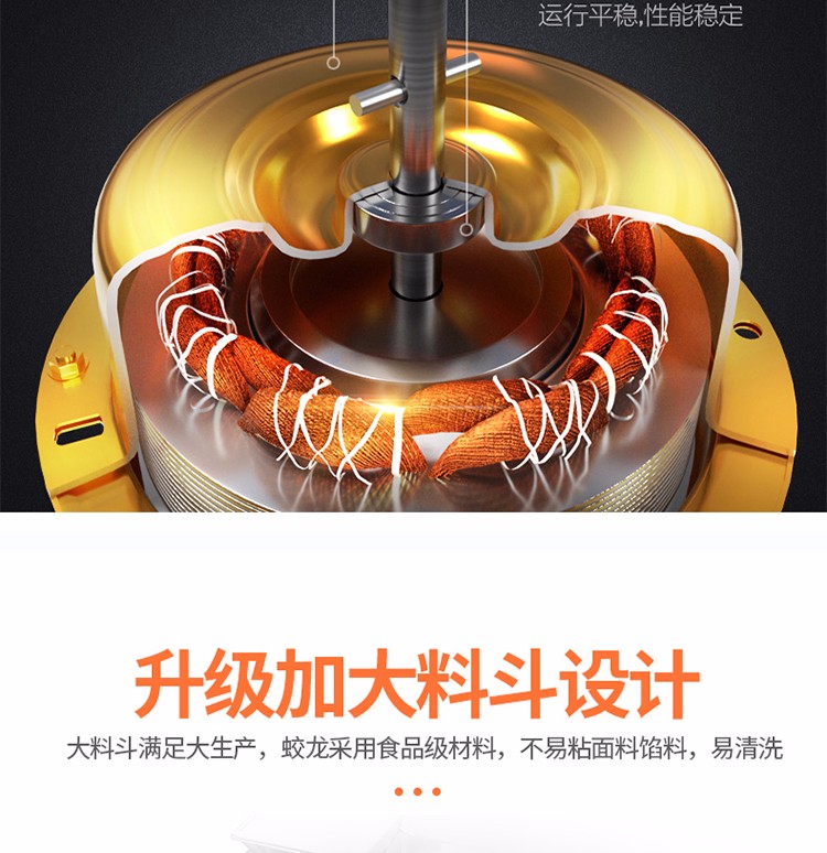 5.料斗加大,蛟龍采用高品質PP材料,不粘面料、餡料,易清洗;
