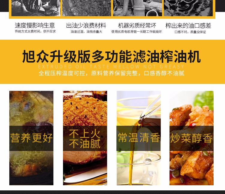 適合壓榨油料 | 芝麻、菜籽、亞麻籽、花生、大豆等多種原料 |