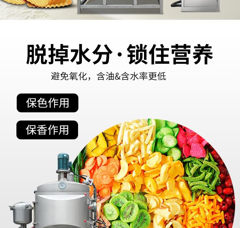 ●真空油炸是在低溫(80~120℃)對食品進行油炸、脫水,可以有效地減少高溫對食品營養成分的破壞。